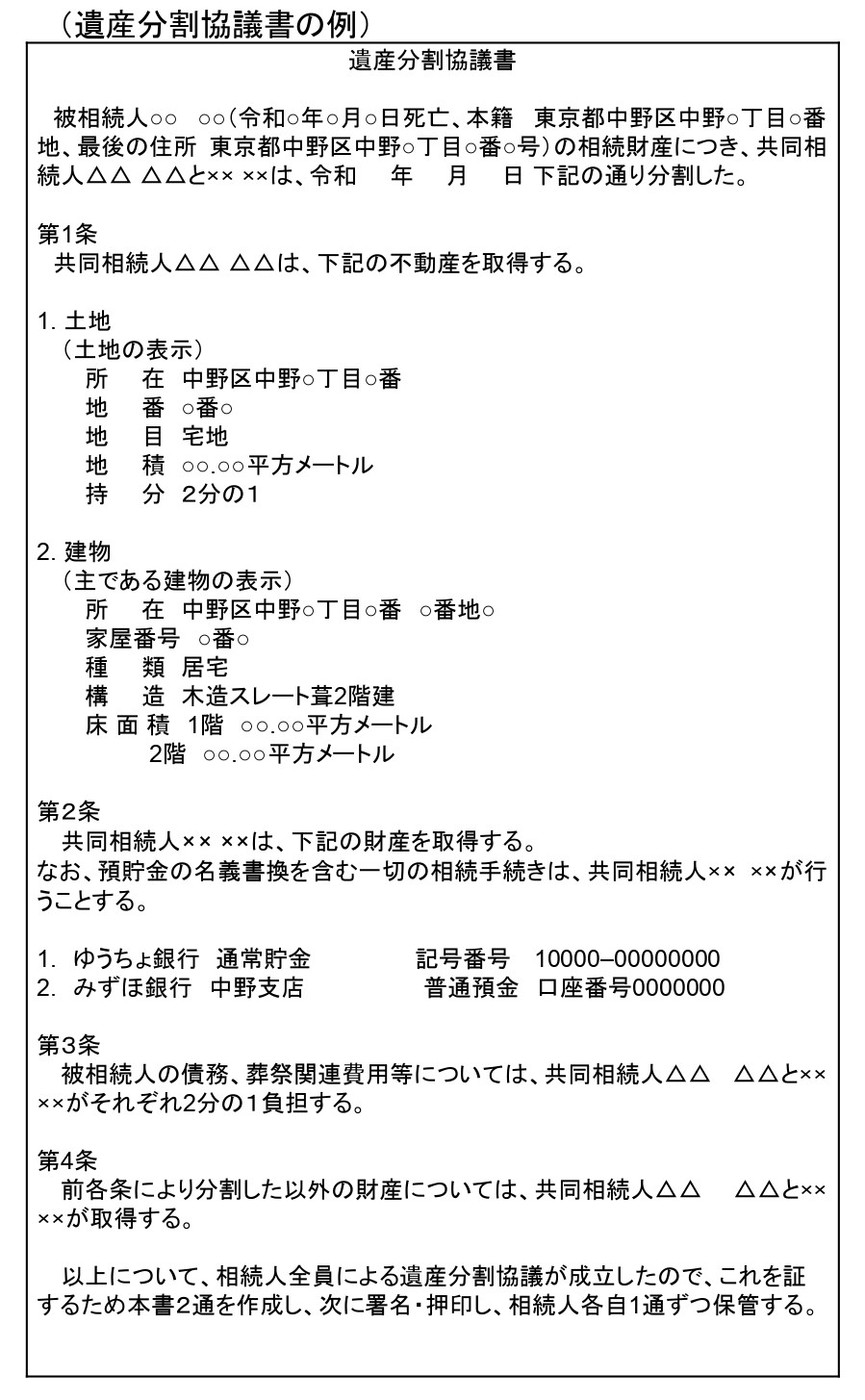 *遺産分割協議書の例は下記のようになります。